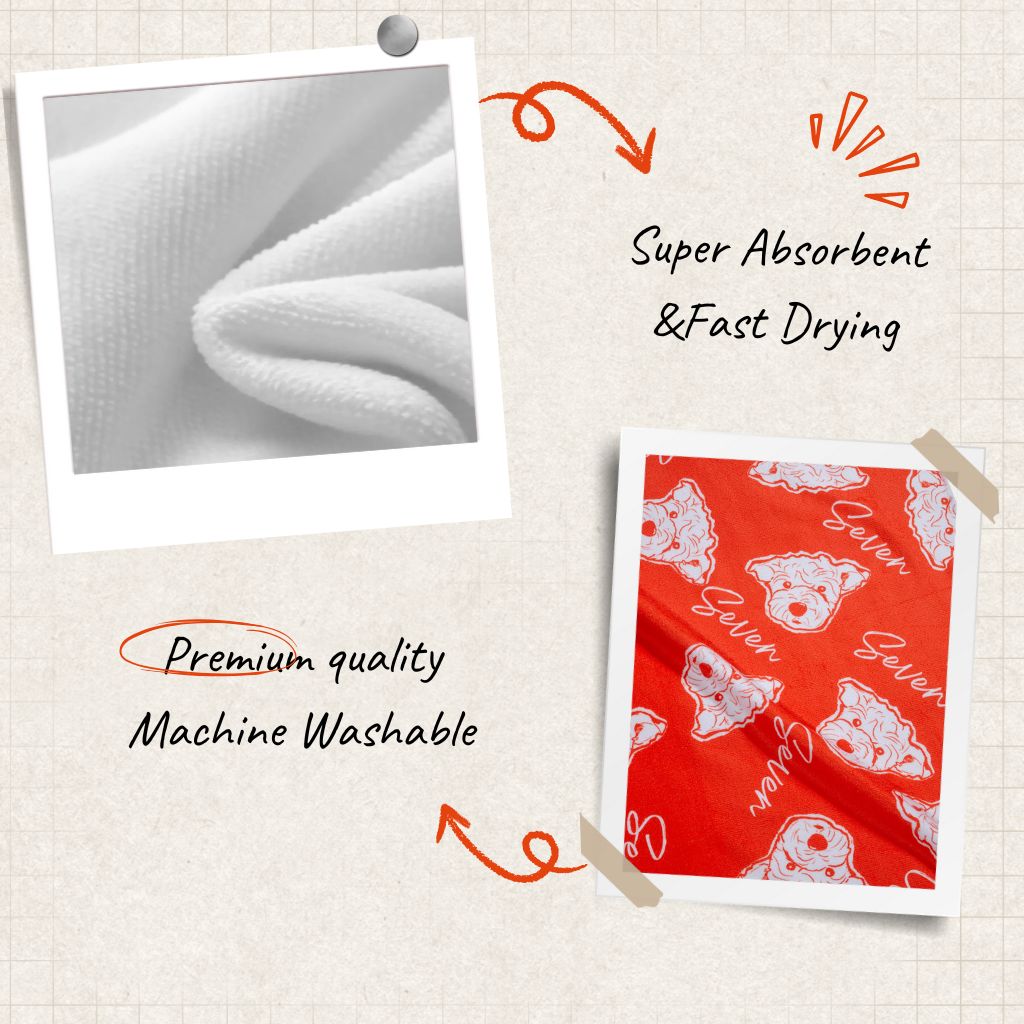 Make a splash before you even touch the water. We transform your pet into a bold, modern illustration layered over a repeating typography background. It’s the ultimate personalized name background beach towel for the pet parent who loves to make a statement.